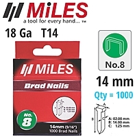 Galv Brad Nail T14 18g 14mm X 1000pcs Miles No8