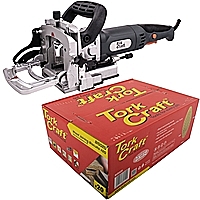 Biscuit joiner set Wattage: 900W Rotation speed: 11000 RPM The set includes A box of No. 20 biscuits. Application: A biscuit joiner is a woodworking tool used to join two pieces of wood together. It uses a small circular saw blade to cut a crescent-shaped hole in the opposite edges of two pieces of wood or wood composite panels. An oval-shaped, highly-dried and compressed wooden biscuit (made from beech wood) is covered with glue, or glue is applied in the slot. The biscuit is icmediately placed in the slot, and the two boards are clamped together. The wet glue expands the biscuit, further improving the bond. Benefits: The grain direction on the biscuits are diagonal to add strength to the joinery. The biscuit provides a quick means of getting a perfectly flush joint, while at the same time reinforcing the joint. Biscuits for the biscuit joiner: ORDER NO. SIZE QTY PC5551 #0 Box of 1000 PC5552 #10 Box of 1000 PC5553 #20 Box of 1000 BIS010 #10 Box of 1000 BIS020 #20 Box of 1000 PC5551-50 #0 Pack of 50 PC5552-50 #10 Pack of 50 PC5553-50 #20 Pack of 50 PC5553-100 #20 Pack of 100 BIS378 378 Pc biscuit kit Spares for the biscuit joiner: ORDER NO. DISCRIPTION TCP10008 ø100x22.22xZ8 blade CMT240.008.04 ø100x22.22xZ8 blade BJ01-3 Field coil (stator) BJ02-1 Armature BJ01-2 Carbon brushes BJ01-4 Switch BJ01-5 Slide hook for switch NOTE: Biscuits may also be referrred to as plates.